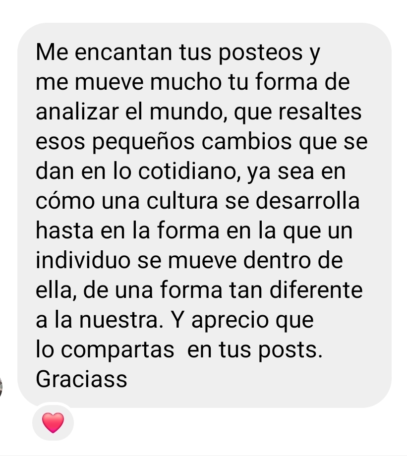 Es decir, cómo funcionan las culturas, las formas de ver el mundo, cómo nos vinculamos entre culturas y qué surge de esa mezcla. Cómo eso impacta en nuestra construcción de este mundo y cómo lo habitamos en el día a día. Nunca encontré un espacio así. Libros fallidos, cursos fallidos. Hasta que empecé la universidad y, cuando estudié esas temáticas desde la academia y lo uní con mis intereses (viajes y emigración), decidí crear ese espacio que faltaba en mi vida.